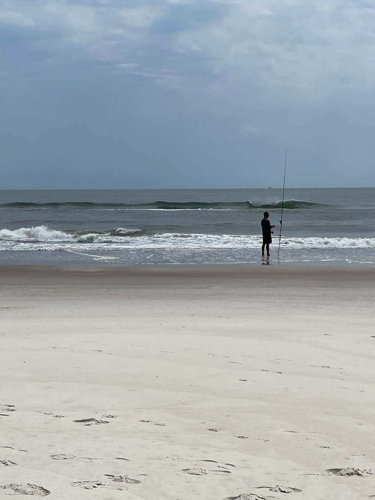 Now, on this trip I had said I wanted to see a shark. I’ve seen a lot of sharks before but still wanted to see one on this trip. There was a guy surf fishing by me and another guy stood up and pointed and yelled, “Shark! Shark!” Sure enough, there was a shark about 75 yards out from us! That ended the time of praying and reclaiming! I went back to laying out!