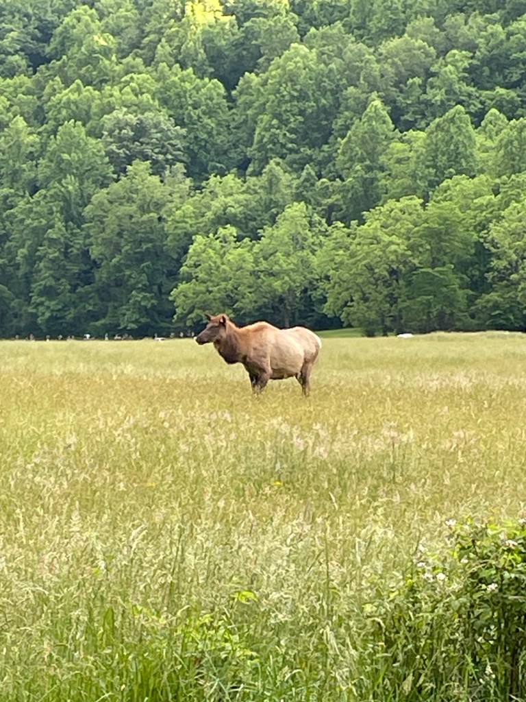 In the field was a young Elk and then another one came walking out of the mountains and into the area where people were painting. The park rangers were on high alert for animals with the amount of people in the park. Myself and maybe 6 others were about 50 yards from the one in the field and we were told if it came any closer we would need to take several steps back.
