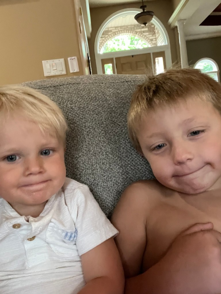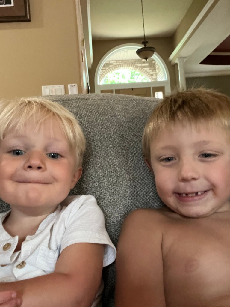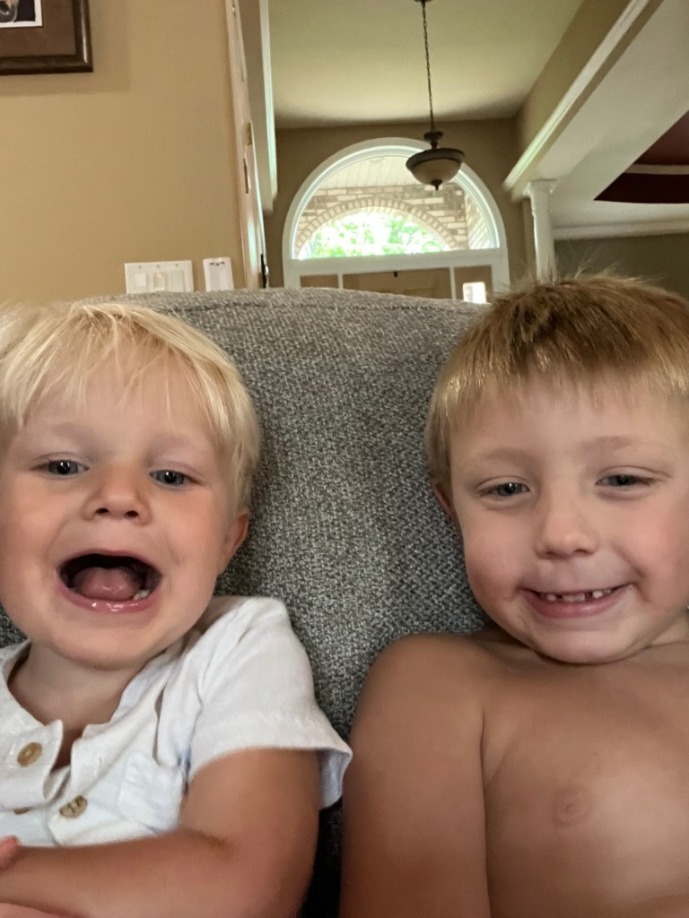 Baby Harvey and Mason making faces into the camera. These guys are fun to hang out with!